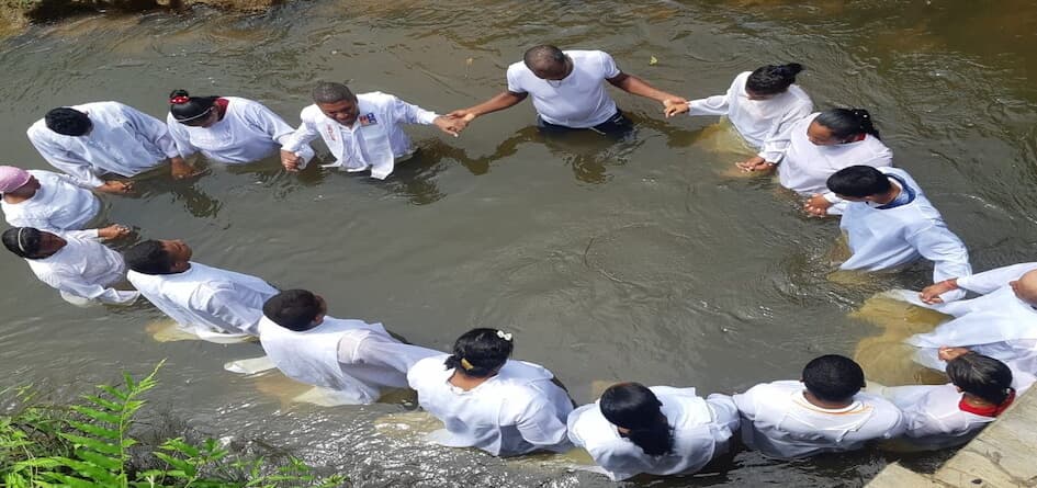 Cristãos perseguidos continuam a cumprir a missão de fazer discípulos de Jesus e batizá-los em todo o mundo (foto: batismo em rio na Malásia)